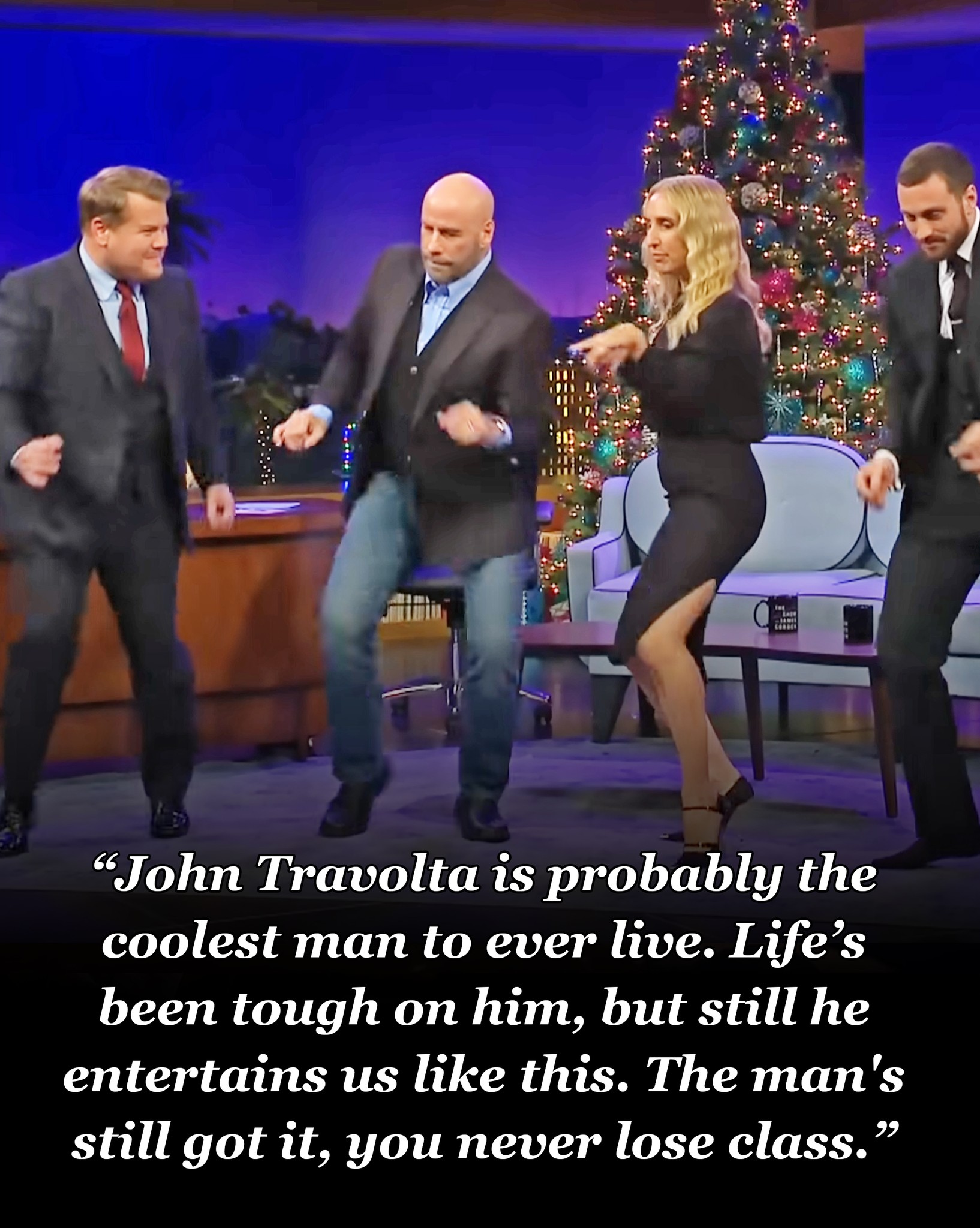 Travolta gave his dance class on The Late Late Show with James Corden on an episode that was uploaded on December 5, 2019. The feel-good segment was quite popular on Corden’s YouTube channel and attracted 18.9 million views. Fans loved to see Travolta back on the dance floor and added comments such as “The man’s still got it – you never lose class” and “John Travolta should be declared as a national treasure. Love the guy, so nice, iconic, resilient and positive.”