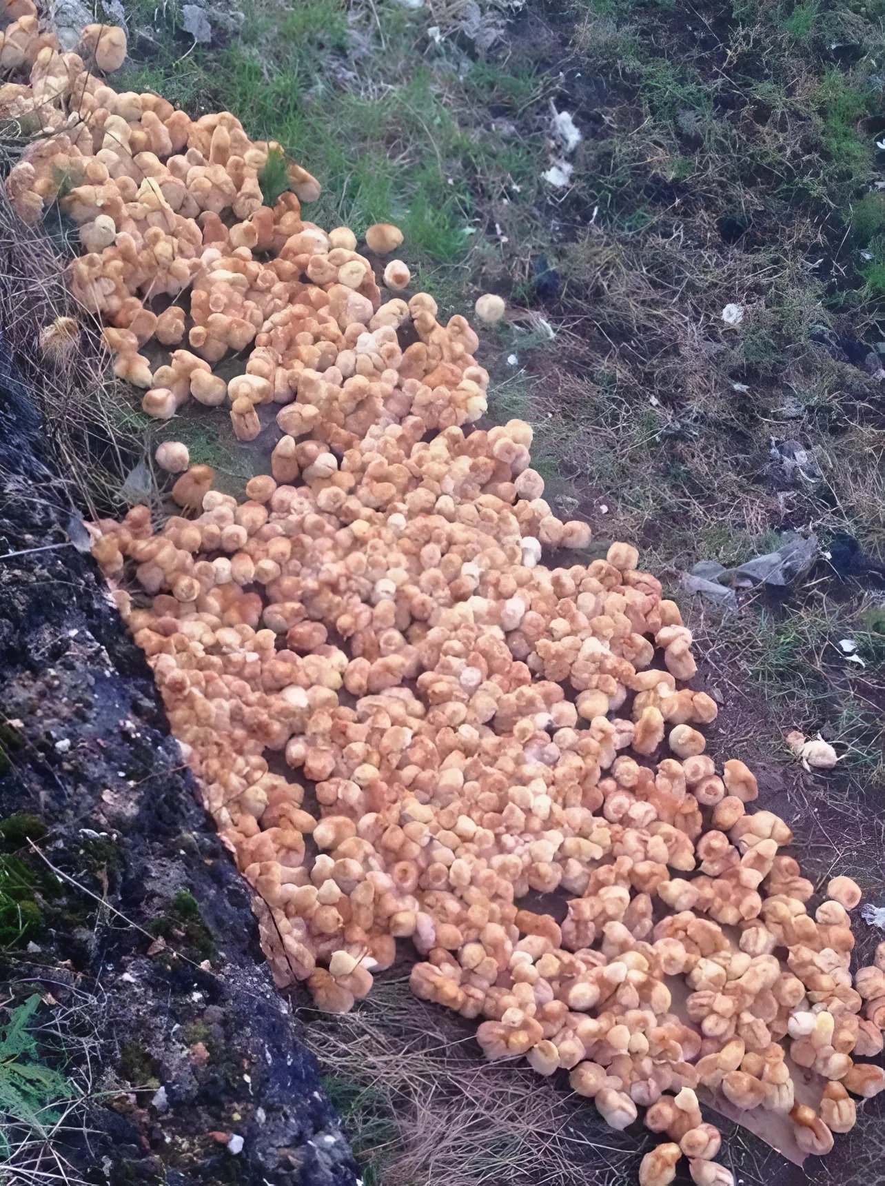 It started like any other walk. The forest was quiet, still soaked in morning dew. I had my headphones in but wasn’t playing anything — I just liked the feeling of them. As I rounded a bend in the path, something ahead caught my eye. A strange-looking pile lay just off the trail, half-hidden by leaves and moss. It was a jarring splash of bright yellow in a mostly green and brown landscape. My first thought was: tennis balls. Maybe some kids had dumped a bag of them for fun. Or perhaps some unusual mushrooms?