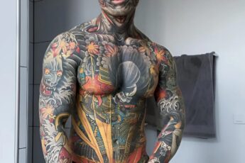 This guy got his first tattoo at the age of 20. Now he’s 25, and 95% of his body is covered in tattoos . He has spent almost $60,000 on all his tattoos . Because of these colorful designs, his parents even stopped talking to him . Recently, he showed how he looked before all these changes . Before-and-after photos are in the first comment