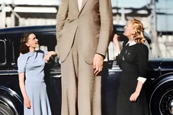 This man was 2 meters and 72 centimeters tall, making him the tallest person to ever live on Earth. He stood out immensely among ordinary people — even his shoe size was 93! Because of his height, he hardly felt pain in his legs, and his clothes had to be specially tailored. What his parents, brothers, and sisters looked like is shown in the article below the photo