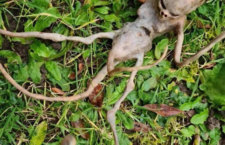 One early morning, I found something so bizarre and frightening in our yard that I almost fainted from fear. I genuinely thought I had found an alien… It happened when I went out just to water the plants. And then, right next to the flowerbed, my eyes landed on something… It was lying there almost hidden, as if trying to blend in with the grass. The object looked creepy: an elongated skull, a thin, stretched-out body, and weird long limbs. It was grayish-brown in color, with some kind of veiny patterns… I froze, unable to move. A wild thought flashed through my mind: an alien! Or a mutant? Or… maybe just a mushroom? But when I found out what it actually was — I was in shock. Continued in the first comment