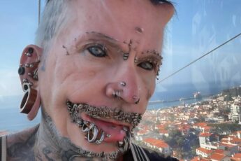 This man has over 560 piercings on his body, which earned him a world record In addition to the piercings, he has horn-shaped implants in his forehead and his body is almost entirely covered in tattoos But the most fascinating part is that he used to be a regular office worker, and he got his first piercing at the age of 40 How this man looked before all these transformations was shown in the first comment