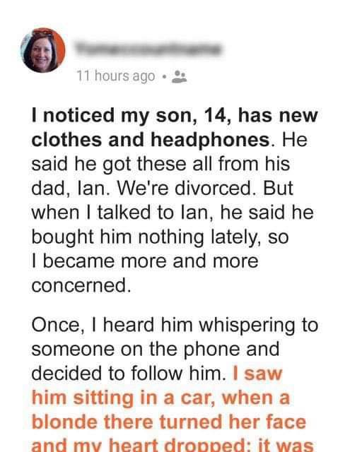 But something didn’t feel right since both Cathy and her ex preferred practicality over name brands, and Alex’s new clothes were rather expensive. Just to be sure that everything was fine, she contacted Ian and asked him if he had bought Alex anything recently. His answer was no.