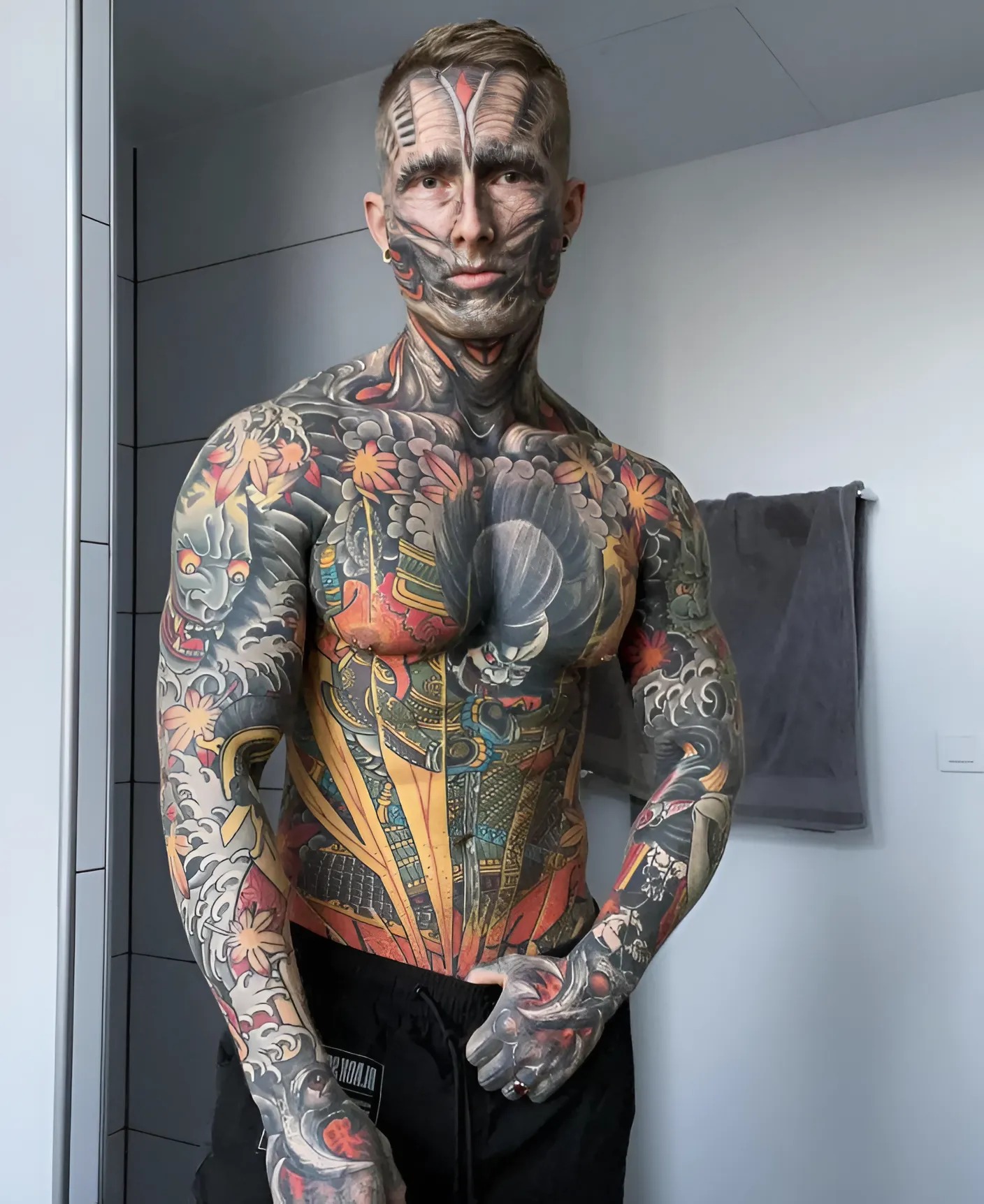 He’s not trying to encourage everyone to do the same, but he does offer advice to those considering a major transformation: “Be confident. Do it for yourself, not for someone else’s approval. It has to be a conscious decision, not a whim.” For him, the tattoos were never about rebellion or shock value — they were about becoming who he always felt he was inside.